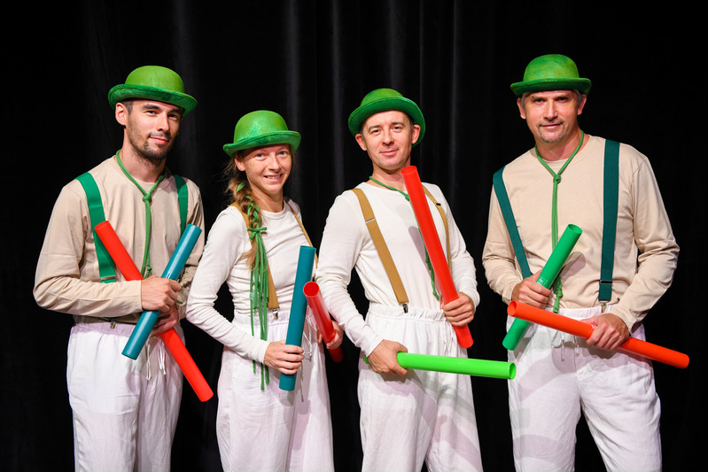 A Hangoló című produkció 25 perces, így a legkisebbek türelmét sem teszi próbára, ugyanakkor a nonverbális előadásban folyamatosan történik valami, ami leköti és megnevetteti a gyerekeket.