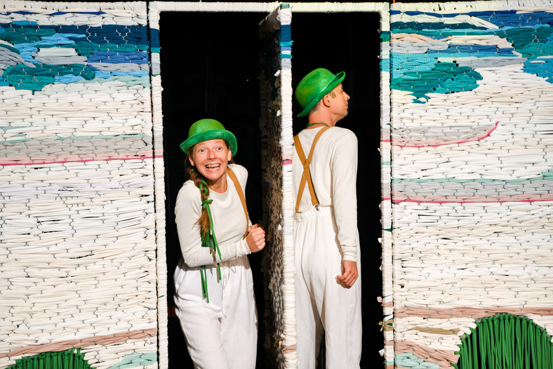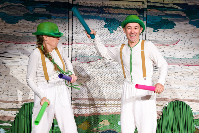 „Bájos történet két pajtás kapcsolatteremtő próbálkozásairól, vidám játék a zene békítő és egymásrahangoló erejéről. A produkció látványvilágának megteremtésénél, a környezettudatosság jegyében, főleg újrahasznosított alapanyagok kerültek felhasználásra. A 25 perces játékidőn túl, a játszótérré alakult színpadon a gyermekek felfedezhetik és kipróbálhatják az előadás díszletét és hangszereit” – írja az előadás szinopszisa.