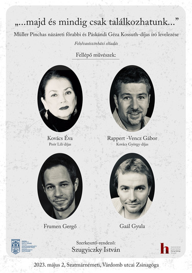 A felolvasószínházi produkcióban részletek hangzanak el Müller Pinchas názáreti főrabbi és Páskándi Géza fájdalmasan szép levelezéséből.