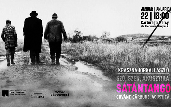 Az est művészei január 22-én 18:00 órától, a Florimund Mercy utcai Cărturești Mercy könyvesbolt kávézójában a szöveg új olvasatát kínálják, mégpedig a művészeti ágak közötti párbeszéd formájában. A társulat színészei – Grgić Nikoletta, Lajter Márkó-Ernesztó és Tóth Dániel – részleteket olvasnak fel a Sátántangó című regényből, miközben Krasznahorkai szövege – Găurean Cristina grafikus helyben készülő szénrajzai és Cári Tibor zeneszerző improvizációja révén – más művészetek kifejezési formáival is kiegészül.