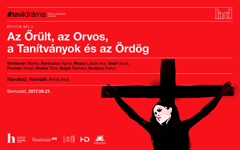 Az eseményen Pintér Béla Az Őrült az Orvos a Tanítványok és az Ördög című drámáját interpretálják a társulat színészei. A rendező Horváth Anna, fiatal, pályakezdő tavaly végzett a Marosvásárhelyi Művészeti Egyetem rendező szakán, Bocsárdi László osztályában.