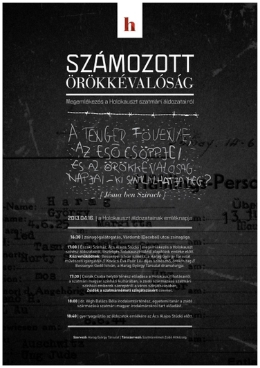 (Elhangzott: 2013 április 16-án, a Holokauszt magyar áldozatainak emléknapján az Ács Alajos Stúdióban, Bessenyei István felolvasásában)