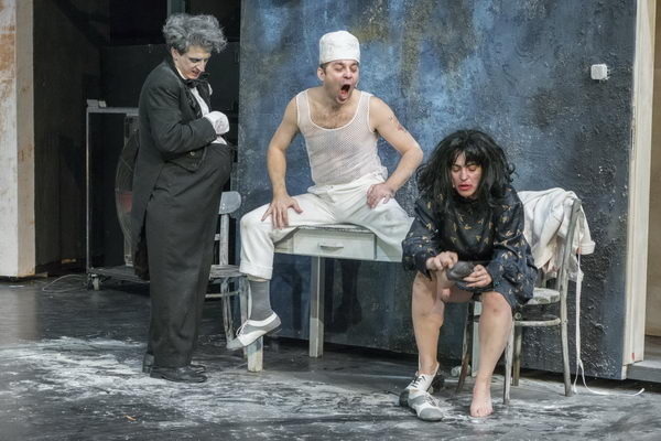 Provokatív hatások irritálnak. Noha rögtön felfogom, hogy formátumos színészi teljesítményeket látok, aminek máskor magában is örülni tudnék. Csöppnyi kétségem sincs, hogy Tokai Andrea és Bandi András Zsolt, akiket régóta csodálok, ezúttal is fantasztikusan játszik, és hogy Csata Zsolt, akit talán először látok, hibátlanul adja közöttük a főszerepet. De mindezt nem tudom élvezni, annyira bosszant a szöveg, a történés értelmetlensége. Jóformán az egész, bő két órán át szünet nélkül tartó játék során csak annyi világosodik meg, hogy egy nem éppen fiatal, de új házaspár, a címszereplő, a dúsgazdag Rabenthal és arája ünnepli az esküvőjét egy étteremnek csúfolt ócska hodályban, ahol szinte csak a halszakács pimaszkodik és szabadkozik, vagy a pincér szerencsétlenkedik.