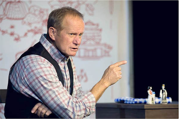 Epres Attila folyton izgő-mozgó, nyughatatlan, megállni képtelen fickót játszik, a monológ alatt folyvást tevékenykedik. Megterít egy asztalt viaszosvászon abrosszal, egészen olyat, amilyen a Diggerdrájverben is szerepelt, gondosan rápakol mindenfélét, de úgy, hogy sohasem tereli el a figyelmet a szövegről, a történetről, a pár szóval telibe találó jellemzésekről.
