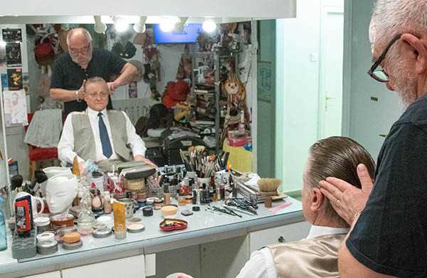 Nincs magánélet, nem nyolcórás műszak. De ha nem szeretnék annyira a színházat, nyilván váltottak volna, vagy abbahagyják, amikor a normális emberfiák például nyugdíjba mennek, mehetnek. Karcsi és Vera viszont örökké fésül, sminkel. Erre a szakmára a nyugdíjazás sem vonatkozik? A színházban a fodrász addig dolgozik, amíg…, amíg csak akar? Úgy tűnik. Nem kötelező abbahagyni, és természetesen nem is akarják. Szerintem eszükbe sem jut, hogy nélkülük is felmehet egyszer a függöny.