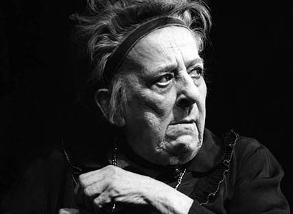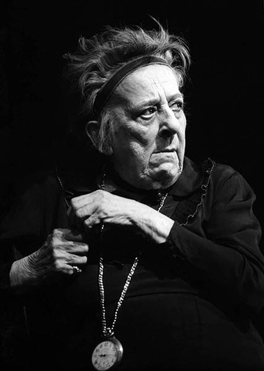 Hányszor volt csúf, nevetséges! Hányszor szívszorítóan elesett! Hányszor volt királynői és hányszor láttuk koldus rongyokban. Hányszor szépült meg a nem szép arc Peer Gynt szemében, amikor a szánkón száguldottak a messzeségbe! Aase anyó. Aase anyácska. S emlékszel-e szán utunkra? ha nem volt itthon apó, játszottunk, takarónk utibunda, s a padlónk fjord jege, hó… De milyen itt, ezen a képen? Nemde kleptomániás vénasszonyként néz vizslatón, nyakában láncon zsebóra, lesi, mikor nem figyelnek, mikor csenhet el valamit, hogy aztán, ha rajtakapták tettetett méltatlankodásból bűbájoló mosolyba váltson át furcsa grimasszal, alázkodva. Boszorkány is tudott lenni, vagy kedves mama, vígsággal vagy elesettséggel egyaránt könnyekre fakasztó. Emlékeznek a Spiró-darab macskás öregasszonyára a Csirkefejből? Micsoda fájdalom, megcsúfolt szeretet volt a játékában! Megrendülést, katarzist váltott ki hangtalan sírása. Azt hihetted, ezt a színésznőt csak a szerepek, a színház érdekli, köti le, hiszen annyira a játékban élt. Pedig közben figyelt. Figyelte, kinek kell segíteni. Mi lesz az öregekkel, a játékban megfáradtakkal. Otthon kell nekik. Vénségükre fészek, ahol békén emlékezhetnek a reflektorfényre, a sikerekre, a tapsokra. És figyelt arra is, hogy a nemzet színháza is megépüljön, és mentette a régiből amit tudott, vitte kis autóján a Dunakanyari házába. Film, tévéjáték őrzi mozgását, és fényképek a pillanatait. Mint ez a fotó is. De majd elindul, majd folytatódik a jelenet a képzeletünkben.
