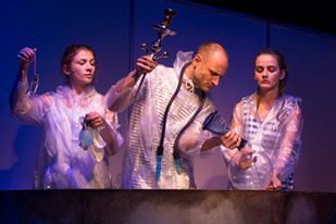 Egy mesével indult a Budaörsi Latinovits Színház 2015/’16-os évada, legalábbis itthon. (Az első saját bemutatót, a Julie kisasszonyt ugyanis csak Budapesten, a Sanyi és Aranka Színházban lehet látni.) A kis hableányból több híres rajzfilm készült és nincs olyan kislány, akinek ne lenne ott a könyvespolcán. De a legritkább esetben az eredeti, Andersen féle változat. A budaörsi színház azonban ehhez nyúlt vissza, amelyikben a sellőlány nem csak a hangját adja oda cserébe az emberi lábakért, hanem végül az életét is, mert a herceg nem szeret bele igazán és nem őt veszi feleségül. Az előadáson ezt már az első mondatból megtudjuk, hiszen Lina (Rusznák Adrienn) mint tajték emlékezik vissza a saját történetére. Hogy miként tiltotta az apja, a tenger ura az emberektől; miként szeretett bele Miró hercegbe (mindkét férfi szerepet Vízkeleti Zsolt alakítja); és hogyan vette rá Urszula, a gonosz vízi-boszorka (Bohoczki Sára) az igen előnytelen üzletre.