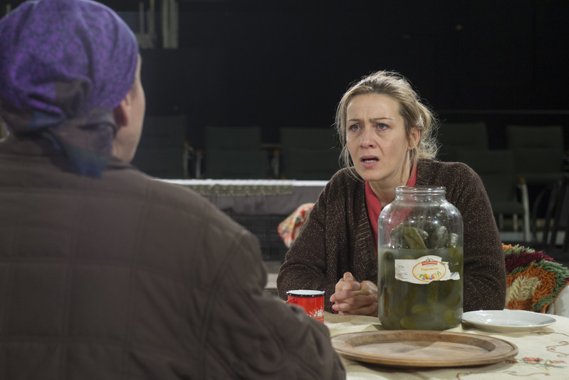 Tán nem is kellene a szünetben olyan gondosan kiszellőztetni. Hadd váljon érzékletessé a szó szoros értelmében vett áporodott levegő, ennek a kibírhatatlanul önpusztító létnek a megtestesülése, ami annyira iszonyú, annyira abszurdba fordul, hogy időnként már-már röhejes, és hát bizony a legnagyobb borzalmak láttán is olykor röhögni kell. És ez nem tiszteletlenség. Alföldi tudja borotvaélen táncoltatni a színészeit. Egy nagyon vékony mezsgyén egyensúlyoztatni őket, annak érdekében, hogy ne váljon egyfolytában nyomasztóvá, vagyis monotonná, tehát unalmassá a produkció. Nem akarja didaktikusságba hajlóan sulykolni, hogy kibírhatatlan, kibírhatatlan, meg kibírhatatlan az élet. Realisztikus, sőt naturalisztikus elemek elegyednek, olyan képtelenségbe hajló szituációkkal, amelyeken muszáj röhögni akkor is, ha húsba vájóan fáj is ez a röhögés, és fájnak a Radnai Annamária által fordított ütős mondatok.
