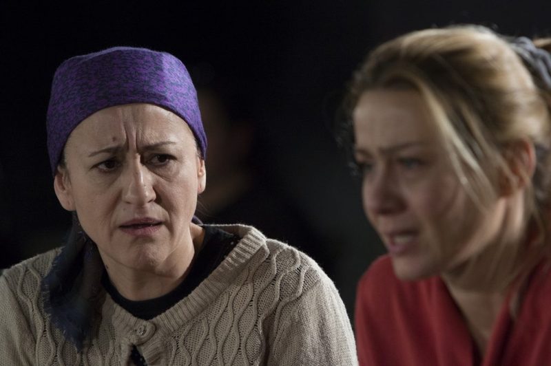 A Budaörsi Latinovits Színház szépen formálódó társulatának színésznőgárdáját pompásan kiegészíti Balsai Móni. Nincs a színésznőkön smink, kendőzetlenek falusi fejkendőkben. Balsai Móni alkati finomsága hibátlanul olvad össze az aggálytalan, egyben gyáva asszony nyers kíméletlenségével és a balsorsa fölötti megadó gyötrődéssel. Spolarics Andrea vezérszólamot visz Matrjona néni szerepében. Anyafigurája alázatos, simulékony gátlástalanságával kijelöli a cselekmény vonalát. Ő az, aki felbujt, buzdít, támogat, segít, és ahhoz is épp elég ügyes, hogy a felelősség elől bármikor elugorjon. Spolarics alakításának mélyéből felsejlik, hogy a kiszolgáltatottság és a kilátástalanság a poklot szabadíthatja el az emberben. Nagy lelki utat jár be a sántára formált mostohalány, akit a különleges tehetségű, szomorúbohóc-arcú Bohoczki Sára játszik megrendítő, néma könnyzuhataggal a gyónás perceiben. Páder Petrának az elhagyott szerető, Marinka néhány megszenvedett pillanatát köszönhetjük.