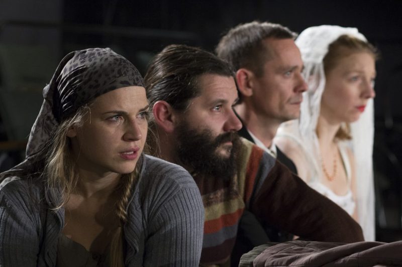 Az előadás minőségének záloga a színészcsapat egységesen erős munkája. Bregyán Péter Pjotr gazdája olyan férfinak látszik, aki egykor sötétre festette a haját a fiatal felesége miatt, de most már az ősz borostája sem érdekli. A darab e meghúzott formájában nemigen ad teret annak, hogy megértsük, ez az ember miért ilyen rémesen mogorva és halálba vágyó. Hiszen láthatólag van vagy volt érdemi kapcsolata tízéves kislányával, akit a gyermek Palugyai Sári játszik meglepő érettséggel, természetességgel, érzelemgazdagon. A főszerepet a jó kiállású, görögös arcélű színinövendék, Brasch Bence adja avval a modernnek tetsző habitussal, amelyet kifelé megélt erős pózok jellemeznek, miközben belül teljes a bizonytalanság. Székely B. Miklós a második részben bejön kifordított katonakabátban, és hozza magával a szűk lét levegőjét, a végigszolgált élet mélyre vésett mintázatát az arcán és az emberismeretet a szemében.
