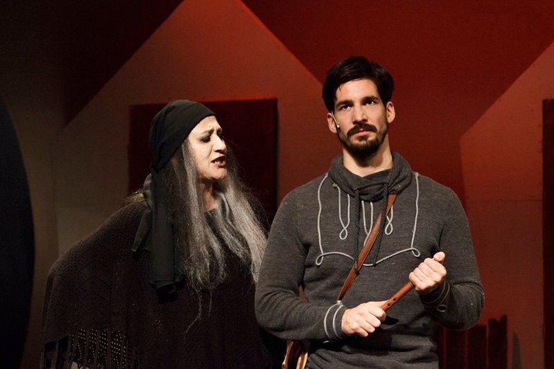 A kitérő után a lényegre térve: jó szemmel választotta ki Frigyesi a munkatársait is. A kosztüm és a jelmez, mint az elmúlt két évadban szinte minden saját bemutató esetében, nagyon jók. Tökéletes az anyagok és a színek (pasztell majd neon és végül a ködbe burkolt fehér) megválasztása ahhoz, hogy felvonásonként tényleg egészen más érzelmi és hangulati közegbe kerüljünk. Azt, hogy nem 1904-et, hanem 2014-et írunk, a lányoknál ügyesen összeállított leggings és tunika érzékelteti. Illetve – bár ez kicsit már zavaró – két mellékszereplő férfin a mai ing és zakó. A színészek játékáról: Páder Petra gyönyörű és hiteles Iluska. Ódor Kristófba minden tinilány képes lenne beleszeretni. Nagyon szép a hangjuk is, az élőben kísérő zongora mellett nagyon jól érvényesültek. Spolarics Andrea pedig - a tetőtől talpig, testre simuló feketében - nagy-nagy kacagásra késztette a nézőket gonosz Mostohaként. A humort fokozta Bregyán Péter, mint esetlen francia király. Marton Róbert pedig már nem csak a szappanopera (Jóban rosszban, aki nem nézné) kedvencünk, mert egyre többször látjuk a budaörsi színpadon is, ezúttal a részeges és bumfordi, de szerethető Bagóként. S ha az ismert párbeszédek alatt (hiszen a felnőtteknek azon aligha kell már izgulniuk, hogy vajon mi lesz a történet vége) olykor-olykor kicsit el-elálmosodunk is a nézőtéren, a főként fiatalokból álló énekkar illetve statiszták - tudomásom szerint színészhallgatók – mindig felélénkítettek.