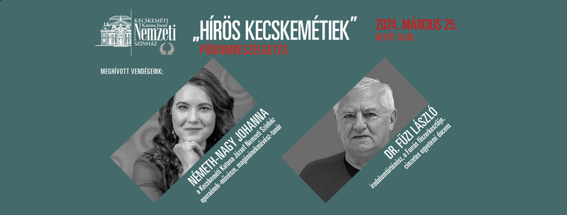 A Kecskeméti Katona József Nemzeti Színház közkedvelt Hírös Kecskemétiek című pódiumbeszélgetés-sorozata a 2023/24-es évadban hatodik alkalommal 2024. március 25-én, hétfőn 18 órakor várja az érdeklődőket két őszinte, mélyreható, helyenként humoros beszélgetéssel. Beszélgetőpartnereink ismert, kecskeméti kötődésű személyiségek, akik pályájukról, sikereikről, bukásaikról és terveikről életük legemlékezetesebb pillanatainak felidézésével mesélnek a Kelemen László Kamaraszínházban (Kecskemét, Rákóczi út 15.).