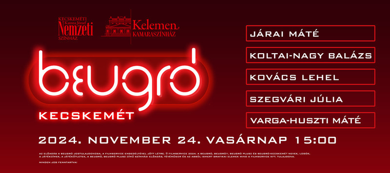 Helyszín: Kelemen László Kamaraszínház, 6000 Kecskemét, Rákóczi út 15.
