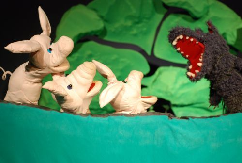 A két kisebbik malac alábecsüli ugyan ellenségük erejét, nagyobbik testvérük azonban furfanggal legyőzi a malacpecsenyére vágyó farkast. A kismalacok nagy bajba kerülnek, de szerencsére a mese végére ismét győzedelmeskedik a józan ész és a jó szándék. A hároméves kortól ajánlott előadás humorral, minimális szöveggel és sok zenével tűzdelt, izgalmas és rendkívül tanulságos.