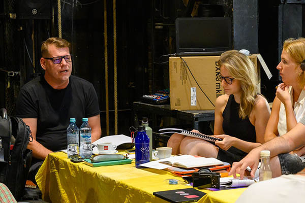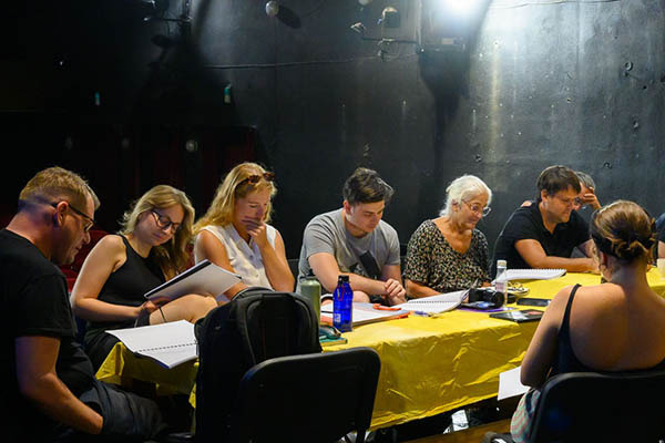 Néhány rendkívül izgalmas ötletét is megosztotta a színészekkel nagy derültség közepette, majd érintőlegesen kényesebb kérdéseket is felvetett a darabbal és az előadással kapcsolatosan. Rövid szünet után a fordító Nádasdy Ádám is megosztotta gondolatait az alkotócsapattal online, és csak azután kezdték el felolvasni a szöveget, melyet a rendező eredeti formájában szeretne színpadra állítani.