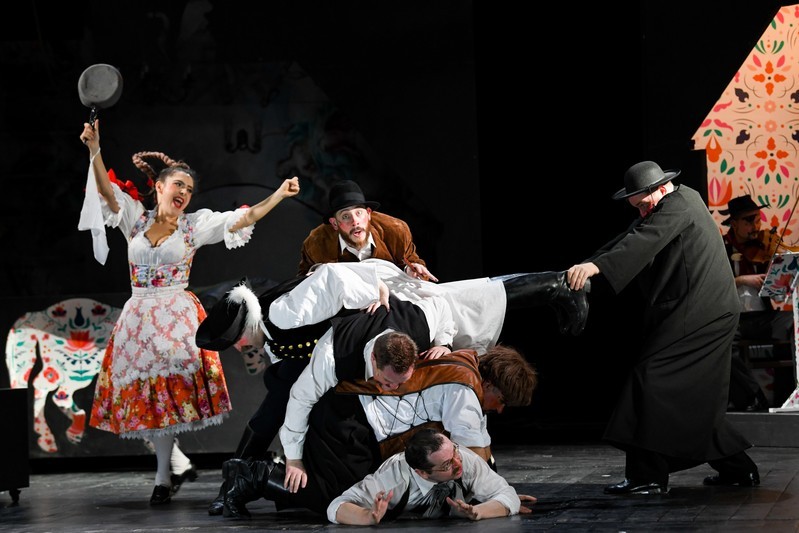 Az előadás szereplői: Rappert-Vencz Gábor, Diószegi Attila, Keresztes Ágnes, Nagy Csongor Zsolt, Kovács Nikolett, Orbán Zsolt, Péter Attila Zsolt, Szabó János Szilárd és Gaál Gyula. A zenekar tagjai: Manfrédi Annamária (zenekarvezető, zongora), Cserey Csaba (dob), valamint a Dinu Lipatti Filharmónia zenészei: Domahidi Péter (hegedű), Budean Dávid (brácsa), Simó Péter (nagybőgő) és Lukács Zsolt (klarinét).