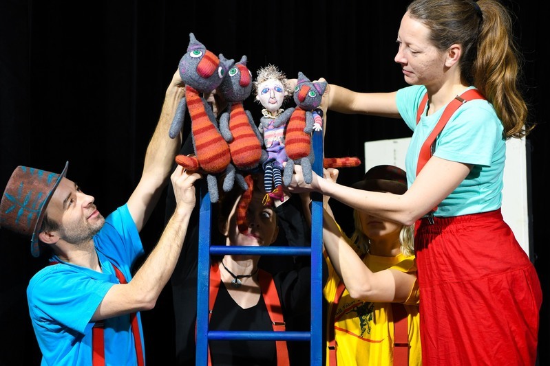 Ezért áll szerintem a bábszínház sokkal közelebb a bohócok világához, mint a színház. Gyakrabban bontjuk le a negyedik falat, gyakrabban vállaljuk fel nyíltan azt, hogy „mi most eljátszunk valamit”, pontosabban „mi most NEKTEK játszunk el valamit”.